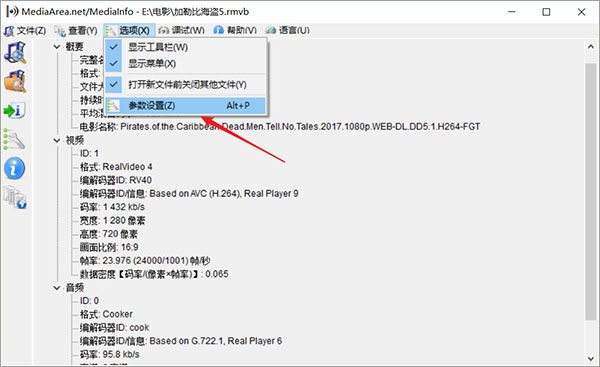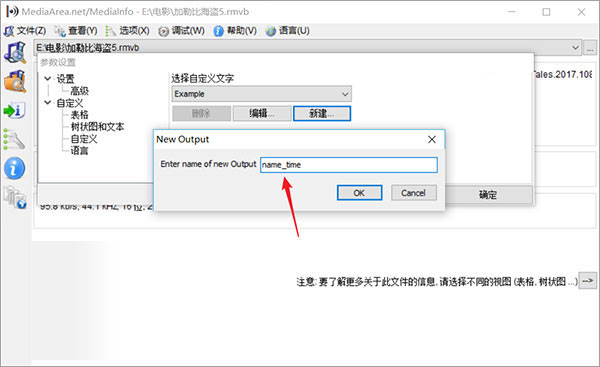 8、小编只想要文件名和文件的播放时长,因此需要自定义输出信息,选项--参数设置;