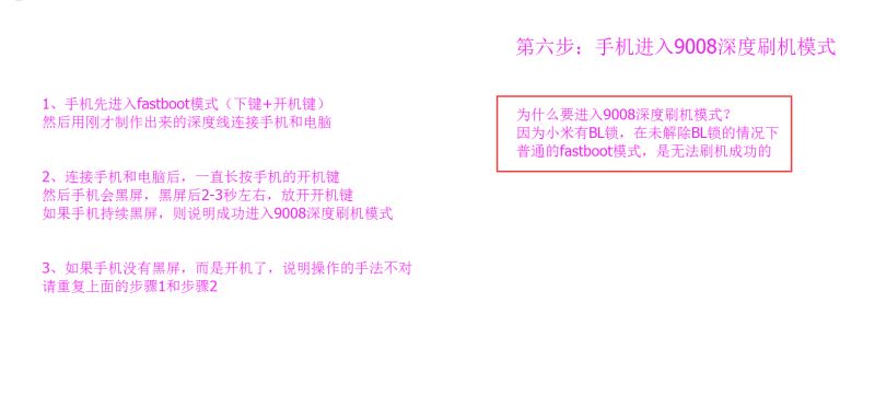 进入深度刷机模式,必须有一条深度刷机线,正确引导手机进入9008模式