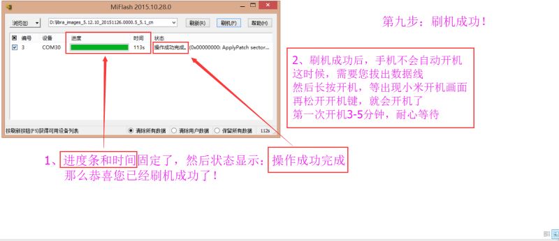 4、做了线,再看一遍第二步,就是通过深层线,进到9008模式,随后刷机,最终刷机取得成功!