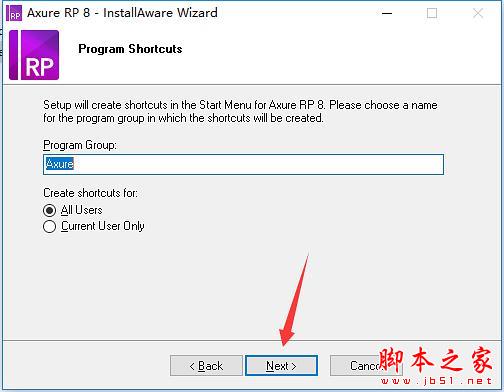 4.到这一步是选择安装的位置,默认是C盘安装,但是呢 建议大家不要装C盘,C盘是系统盘,可以装在其他盘,不然C盘软件装多了,影响系统运行速度。我这边示例的位置是安装在D盘,根目录是:D:\Program Files (x86)\Axure\Axure RP 8。 这个是我的根目录,根目录就是你的软件安装的位置简单可以这样理解。然后“Next”下一步。参考WinWin7分享的图片: