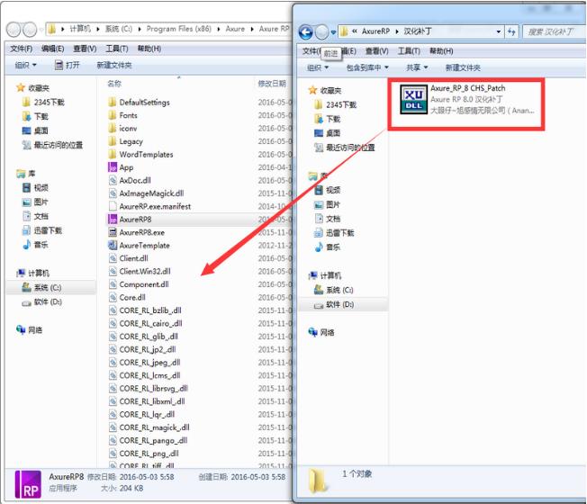 9、接着把“Axure_RP_8 CHS_Patch”移至软件跟目录,参考WinWin7分享的图片:
