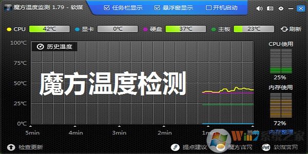 3. 支持监测CPU、硬盘、主板等设备的实时温度;