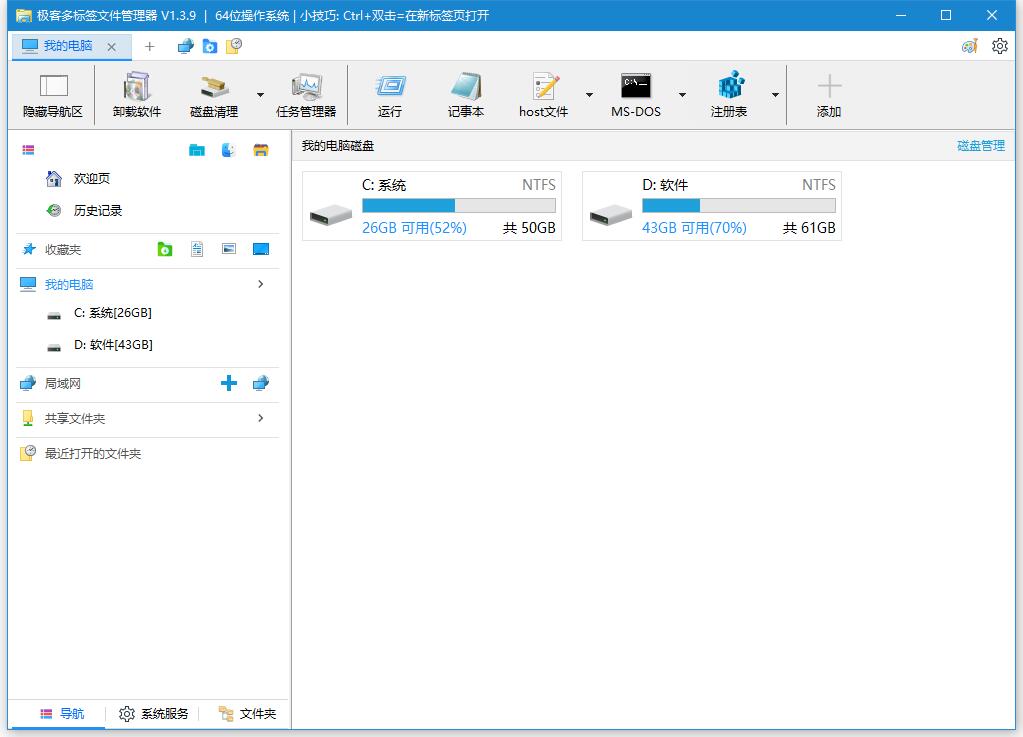 超级文件资源管理器X最新版是一款功能实用的文件管理工具,超级文件资源管理器X官方版支持标签页,让文件管理更简单,更省心,归类显示,AI操作感知,在处理文件时更高效,值得一提的是,该程序还具备了卸载软件、磁盘清理、开机启动项管理、计算机管理、共享管理、磁盘管理、服务管理等多种功能,为您带来全面的系统资源管理方案。