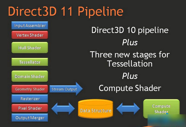 DX11增加了测算着色器(ComputeShader)编码实例,在今年NVISION大会上,微软就透漏了这一点,并且通过SIGGRAPH及其GameFest2008大会上放出的ppt,我们可以进行一些深入研究。除此之外,DX11特性的提前放出,对于目前DX10及其DX10.1硬件配置客户来讲也大有益处,由于AMD和NVIDIA能够照此提前开发设计适度的推动适用。
