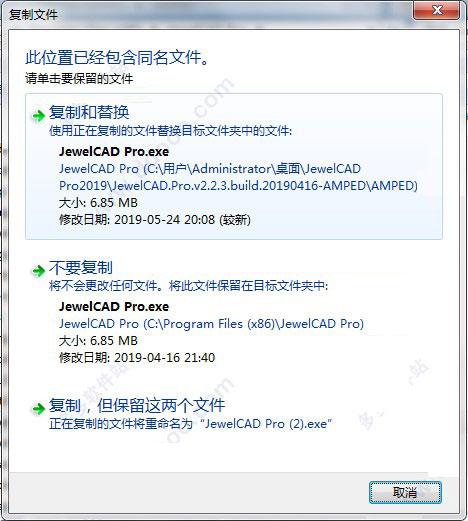 7、将破解补丁复制到软件根目录下,选择替换操作