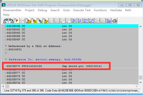 W32DASM、SOFTICE和Hiew(Decode方式)表明的地址全是虚拟注册地址,但是在Hiew(Decode方式)下,F5功能按键搜索的地址是偏移地址,因此必须将虚拟注册地址转化成偏移地址,才能找到恰当的地址。常见的方式是在W32DASM下将绿色的光条挪到某一行代码上,在对话框底端有一行字标示其偏移地址,如虚拟详细地址:CodeDaTa@0040534e而偏移地址为:@Offset0000474Eh.这便是偏移地址。