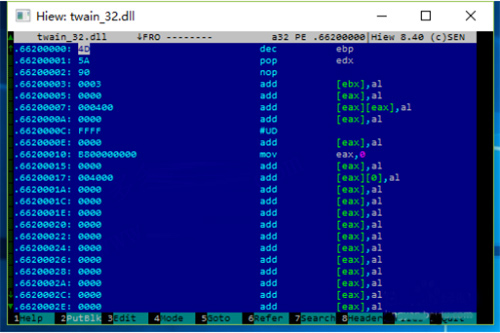 3、启动HIEW,进入程序界面如下图所示!win10下有部分乱码,不影响,见winwin7分享的图片: