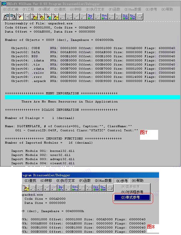 返汇编之后。点击上面的参考----串式参考,见winwin7分享的图片: