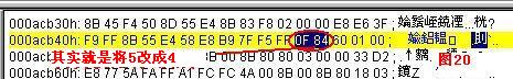 前面说过正确注册信息在错误信息之上,所以这里将of85改为of84。(如果正确注册信息在错误信息之下,这里改为eb)。将光标移到5上直接输入数字4即可,其他地方不要动。好了,改好只后左上角的文件---另存为unpacked222.exe
