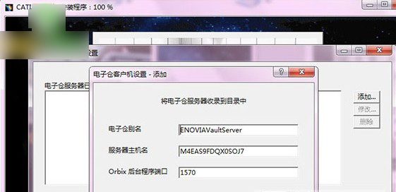 15、当CATIA安装进度条达到100%时,自动弹出“电子仓客户机设置”窗口,如WinWn7分享的图片所示:
