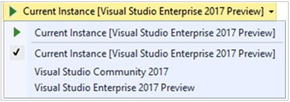 如果安装有多个 Visual Studio 2017 实例,在调试时现在可选择要将扩展部署到的实例。 这样,在预览通道中调试时可以在诸如 Visual Studio 版本等通道中开发。