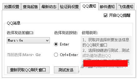 5、值得说明的是,如果是刷漏票就使用电脑识别好了,不必浪费远程打码的积分。对于刷漏票,用户还可以设置软件的提醒功能,有QQ、邮件及飞信三种方式,考虑到时效性,我建议使用QQ,如图所示: