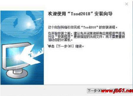 2、安装好AutoCAD后,双击“Tssd2018(2018-3-5).exe”安装,点下一步继续,如WinWin7分享的图片所示: