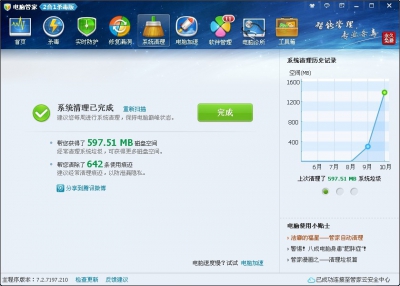 电脑管家能够帮你快速清理系统中的垃圾和使用痕迹,帮你节省系统空间。