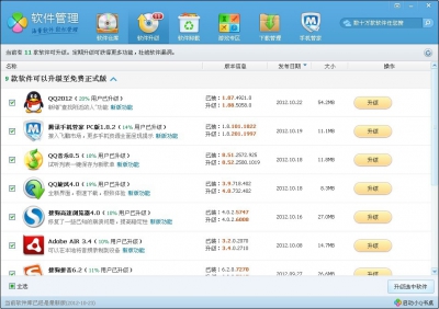 点击首页主界面中的【软件管理】按钮,呈现以下【软件管理】界面:
