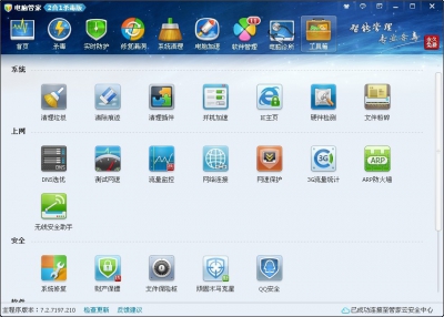 电脑管家还提供了诸如“清理插件”“硬件检测”“网络连接”“无线安全助手”“文件保险柜”等诸多实用小工具!