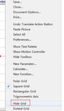 步骤一 打开画板,建立直角坐标系(菜单栏里选择“绘图”——“定义坐标系”),在空白处右击鼠标,在弹出的对话框中选择“隐藏网格”,如WinWin7小编给大家分享的图片: