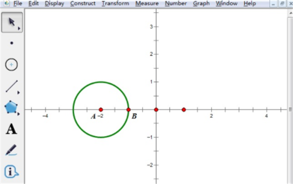 步骤二 在空白处右击鼠标,在弹出的对话框中点“绘制点”,绘制两个点A(-2,0),B(-1,0),按顺序选中点A、B,在菜单栏里选择“构造”——“以圆心和圆周上的点绘圆”,构造一个单位圆。拖动单位点调整单位长度,如WinWin7小编给大家分享的图片: