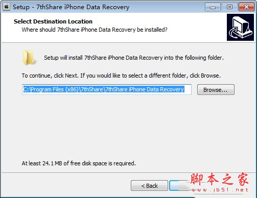 2、选择自己想要的路径C:Program Files (x86)7thShare iPhone Data Recovery,选择完成后点击确定,如图所示: