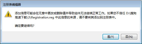 8、运行Registration.reg,添加注册表,点击是,如图: