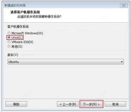 4、系统选择Linux,版本选择 Ubuntu,单击“下一步”;