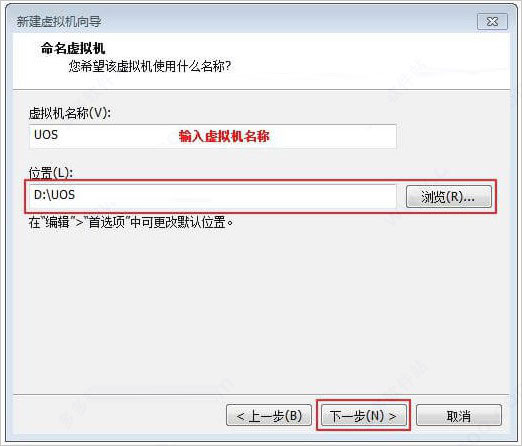 5、虚拟机名称是uos,位置默认是在C盘,需要更改到其他盘,不然几十G的文件会将C盘塞满;