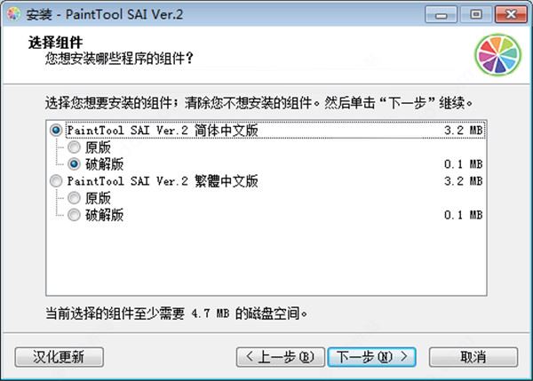 4、根据自己需求来选择简体中文或繁体中文的破解版本安装组件;