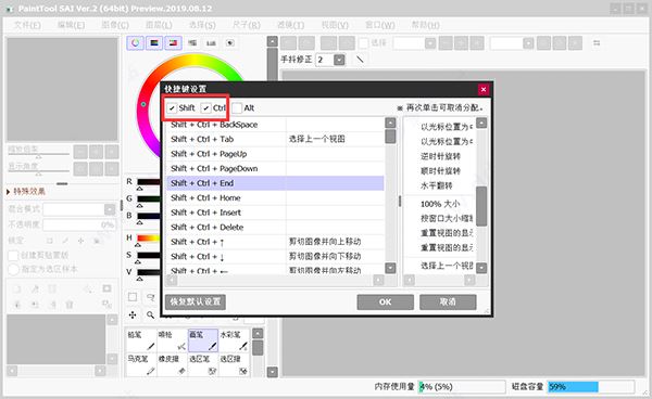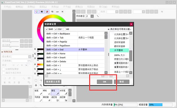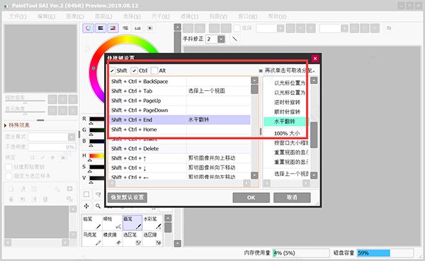 步骤五:左侧选中快捷键,右侧点击快捷键功能。Shift+Ctrl+End快捷键,设置为“水平翻转”即可。