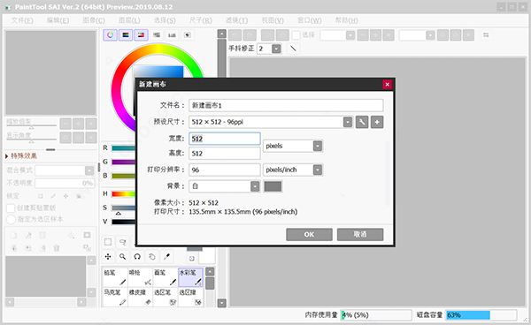 步骤一:打开电脑上已经安装好的SAI软件,并新建一个适合的画布;