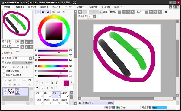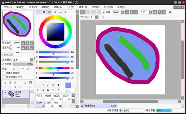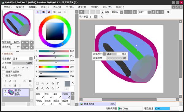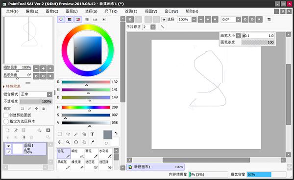 8、安装完成后即可获得sai2020中文破解版啦,接着即可无限制的随意使用了。