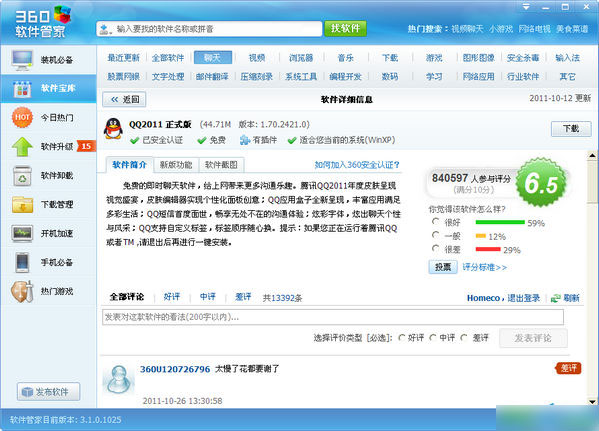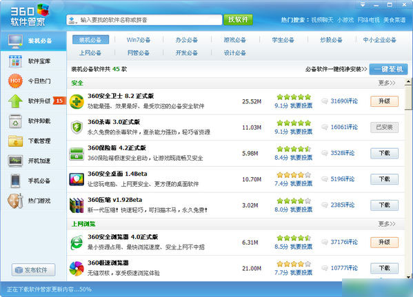 方便下载软件,管理软件,更新卸载软件就用360软件管家!