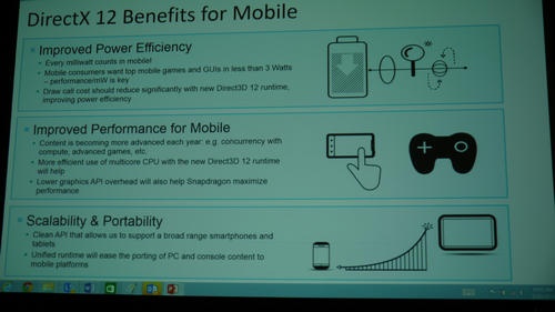 依照高通这样的说法,DX12能够大大提高能耗等级,改善挪动设备,并且在可扩展性、可移植性层面都很不错。