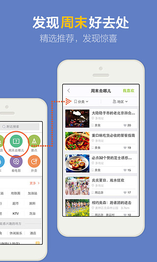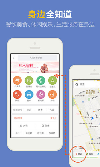 提供周边餐饮美食、休闲娱乐、酒店购物等海量商户信息, 包括商户电话、地址地图、客观点评等免费下载优惠券, 还可享受最新鲜的团购折扣信息