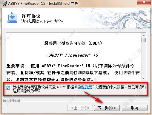 2.首先安装软件,双击安装程序“ABBYY FineReader 15.···安装包.exe”开始安装软件;