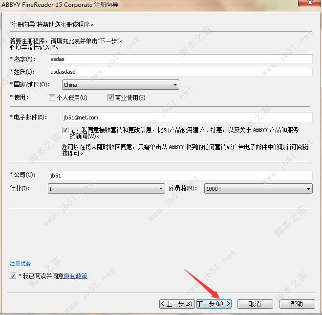 在注册界面随意输入注册信息(电子邮件格式必须正确);如图