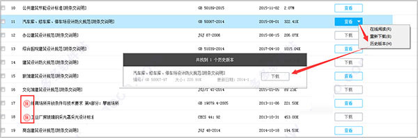 点击当前规范 下载/查看 按钮上的倒三角,可以查看其具体历史版本。直接作废的规范会用“废”字标识。