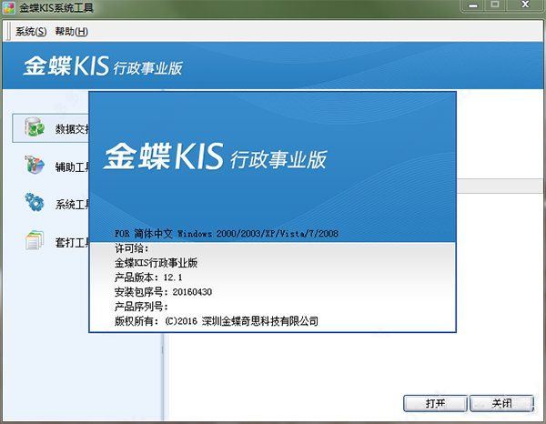 金蝶KIS根据行政事业单位日常财务核算工作、紧密结合政府收支分类改革政策而开发的一款财务信息化管理软件,充分汲取了政府收支分类改革内容精华,融合了近千家行政事业单位用户的实际需求,以强大的功能亮点和易学易用的操作优势,旨在帮助行政事业单位规范会计核算行为、提高管理水平,提高行政事业单位的工作效率和降低财政运行成本,帮助广大行政事业单位在最短的时间内完成改革工作任务。具有账务处理、固定资产、工资管理、往来管理、报表与分析、出纳管理等功能,帮助了行政事业单位规范会记核算提高了管理水平,满足了民间非盈利组织财务管理需求,适用于党政机关、科研单位、学校、建设单位、医疗机构、社会团体、基金会、民办非企业单位、寺院、宫观、清真寺、教堂、其他行政事业单位,可以说是财务管理频道下深受用户喜爱的软件。金蝶kis行政事业注册机使用教程