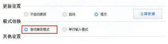 请您升级到5.6及以上版本,并在安装时,选择游戏兼容模式,或在输入法“属性设置——高级”中,切换至游戏兼容模式,切换设置后,请重新启动您的游戏(或已开程序),以保证输入法设置被应用。具体可参考问题2。