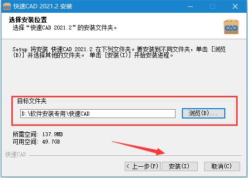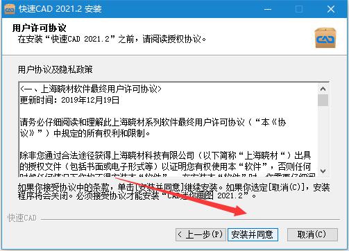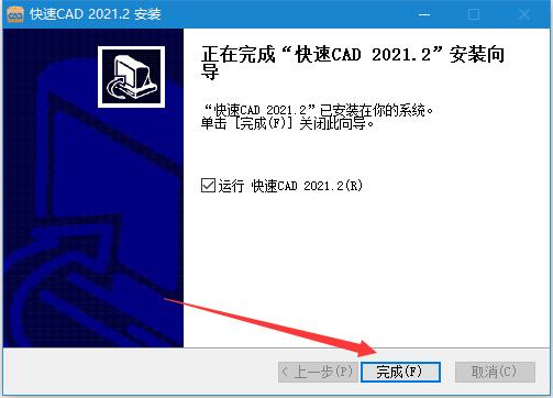 2、按照提示完成安装,欢迎使用“快速CAD 2021. 2”安装向导;