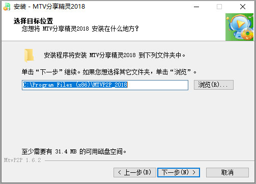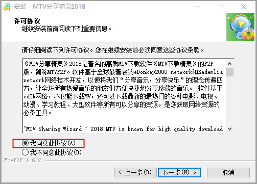 1、在本站下载并解压,得到mtv分享精灵2018官方版源程序安装包,双击MtvP2P_Setup2018.exe启动程序;