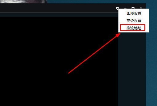 1.第一次打开软件的时候就有这个输入推流地址弹窗,因为还没设置好,所以当时关掉了, 现在要输入的话,就点击右上方的“齿轮”设置选项,选择其中的“推流地址”选项,参考WinWin7分享的图片: