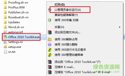 1.同样选择“以管理员身份运行”office 2010 toolkit.exe文件(如下图)