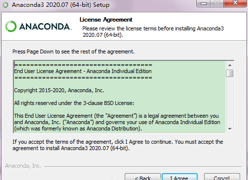 4、点击I Agree,即同意Anaconda的协议,才能使用Anaconda