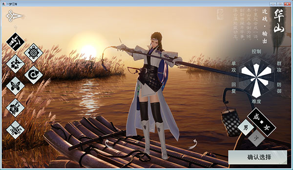 特点:华山在游戏中的定位是近战DPS,出色的群攻、强悍的控制,灵活多变的剑势,令他穿梭于攻守之间。在团队作战中,起着不可或缺的辅助作用。华山的许多剑招,都需轻功配合方能施展,他们的身法极为轻灵,可借剑身回弹跳跃,神不知鬼不觉的绕至敌人身旁,发起攻击乃为易事。 武学:快雪时晴、流星逐月、万径千山、五岳为倾、千山吹雪、弹剑啸歌、华岳山峰、藏风流云、惊鸿照影。