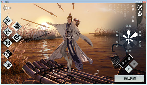 特点:武当一派战斗之力虽足,却非以攻势为主,而是以静制动,以柔克刚。一招一式,收放自如。他们一派擅长远程攻击,以应接不暇的剑气,将敌人逼至绝境。他们的很多技能,还带有减速、击飞、眩晕等控制效果,进可攻、退亦可守。在团队战斗中,武当可以在敌人的攻击范围之外,凭借敏捷的身手从容输出。若能将武当剑气控制得当,则队友的伤害,才能出得畅快、攻得淋漓。