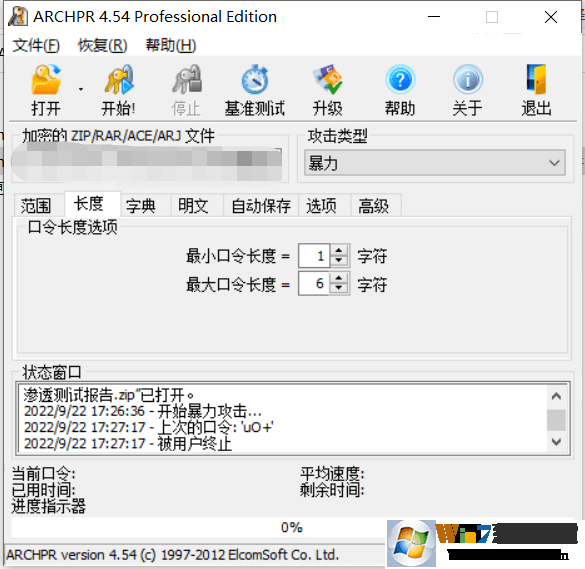 3、可以选择密码破解的范围选,密码的长度。小编测试的是