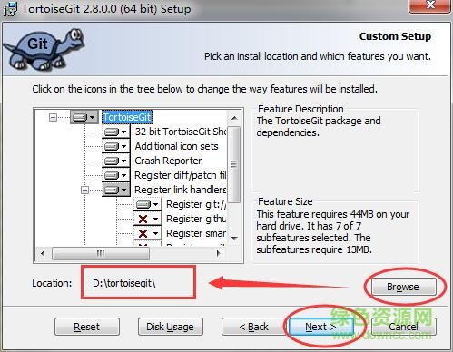 1.在绿色资源网下载tortoisegit,压缩包中包含了32位和64位两种,请根据操作系统位数选择,并且已附带了中文语言包