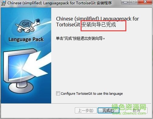 12.点击“完成”即可,到这里tortoisegit中文版就彻底安装完成了。