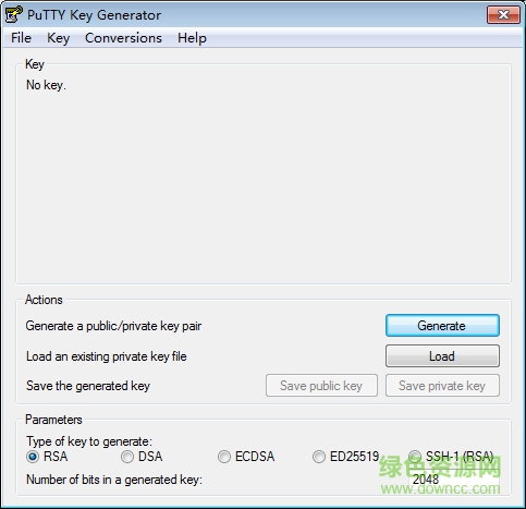 开始-->tortoisegit-->puttygen,进入putty key generator