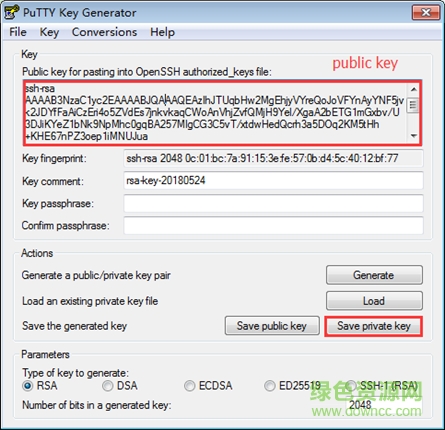 先点击save private key把私有的密钥存起来,记住存储的位置,后面会用到